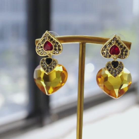HundredthZ 24K Gold Alloy Plated Champagne Crystal Heart Vintage Drop Earrings